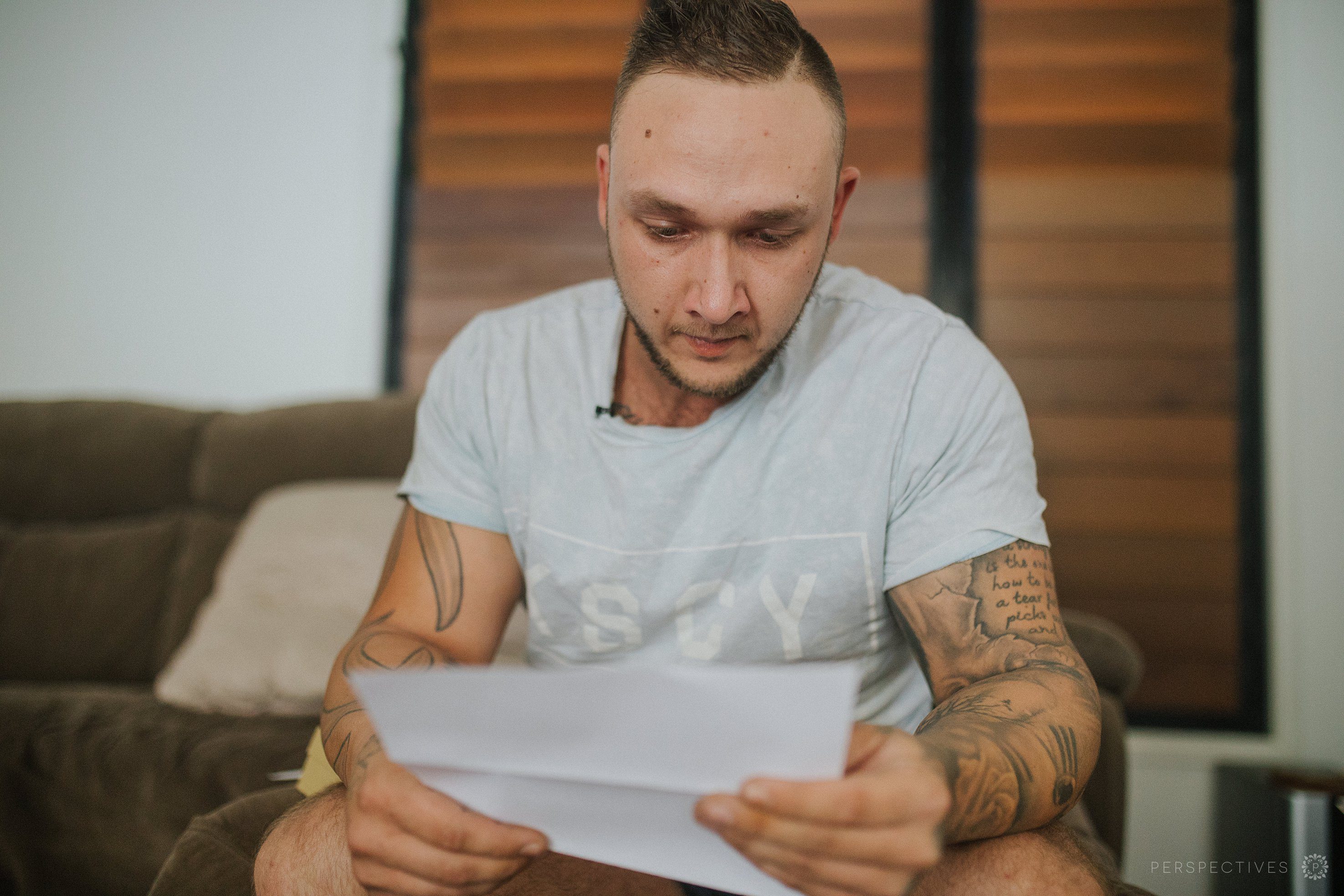 Jessica & James got ready in the same house together, which meant a bit of stealthy manoeuvring to ensure that no-one accidentally saw each other. Instead, they shared custody of their super cute dog Clyde – and shared letters with one another (complete with a few tears!).