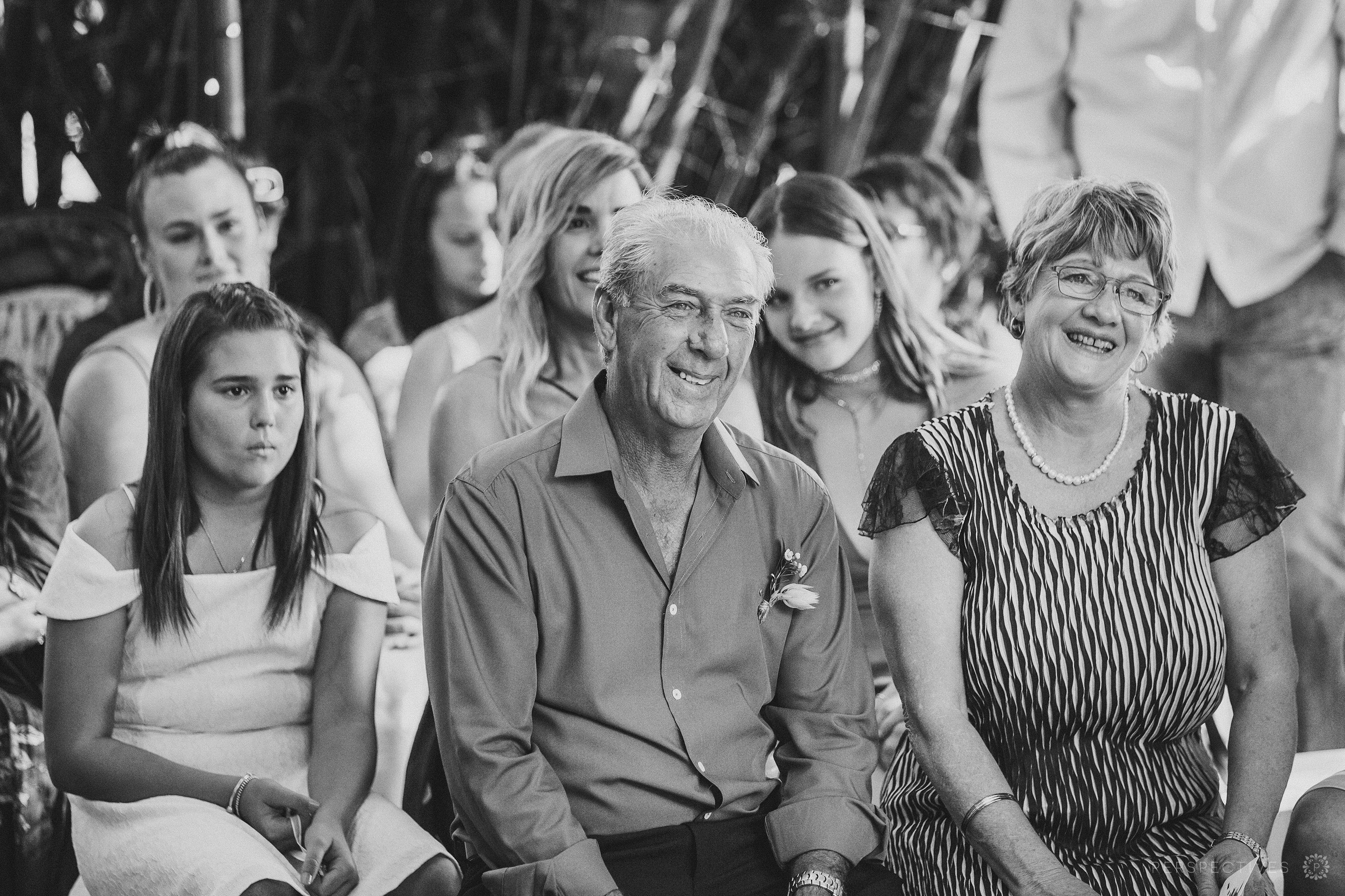 Down at Laloli, the guests had gathered in the bamboo archway, which conveniently matched the triangle wedding arch that Jess & James would be standing under. Their ceremony brought more tears – it was super intimate and special.