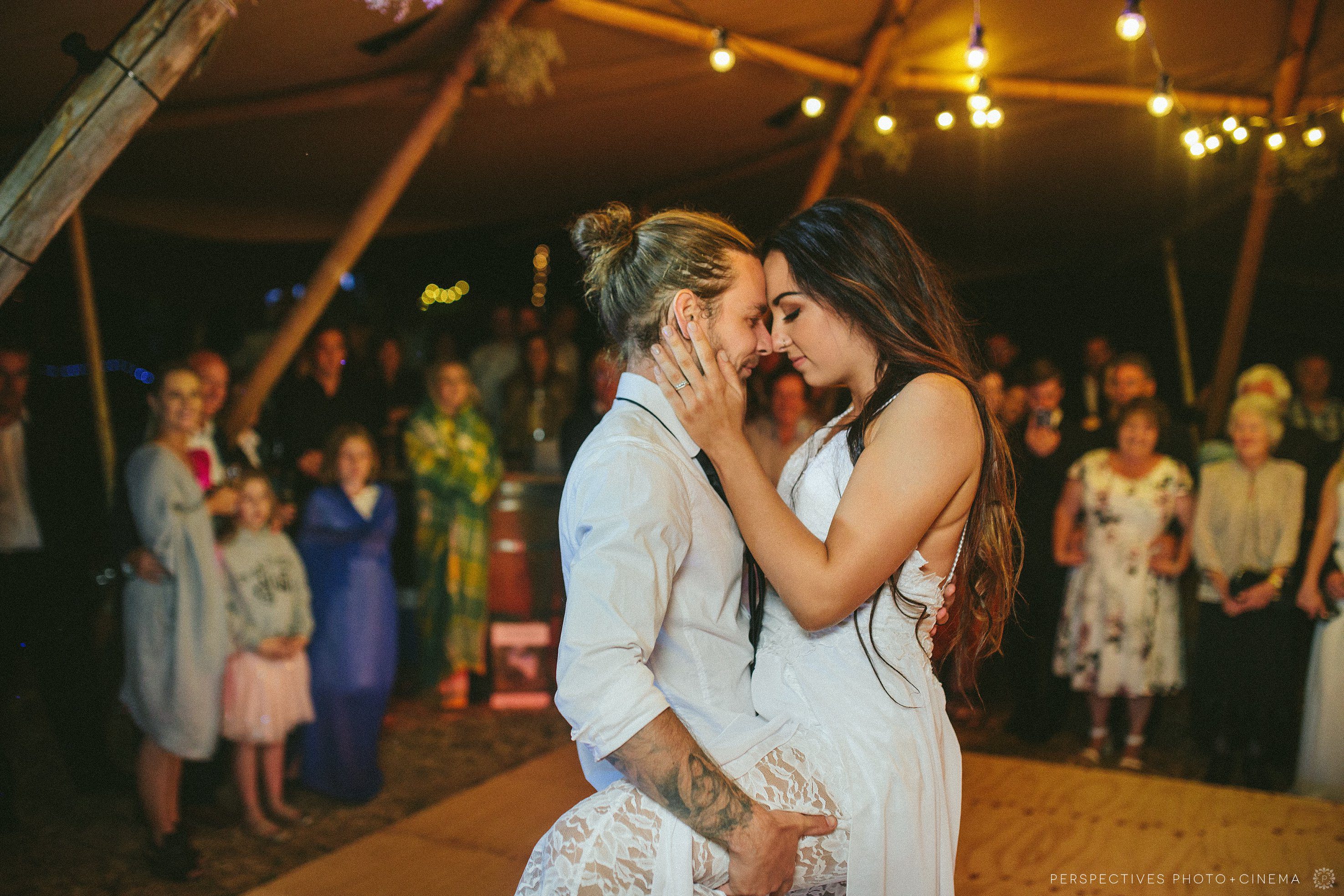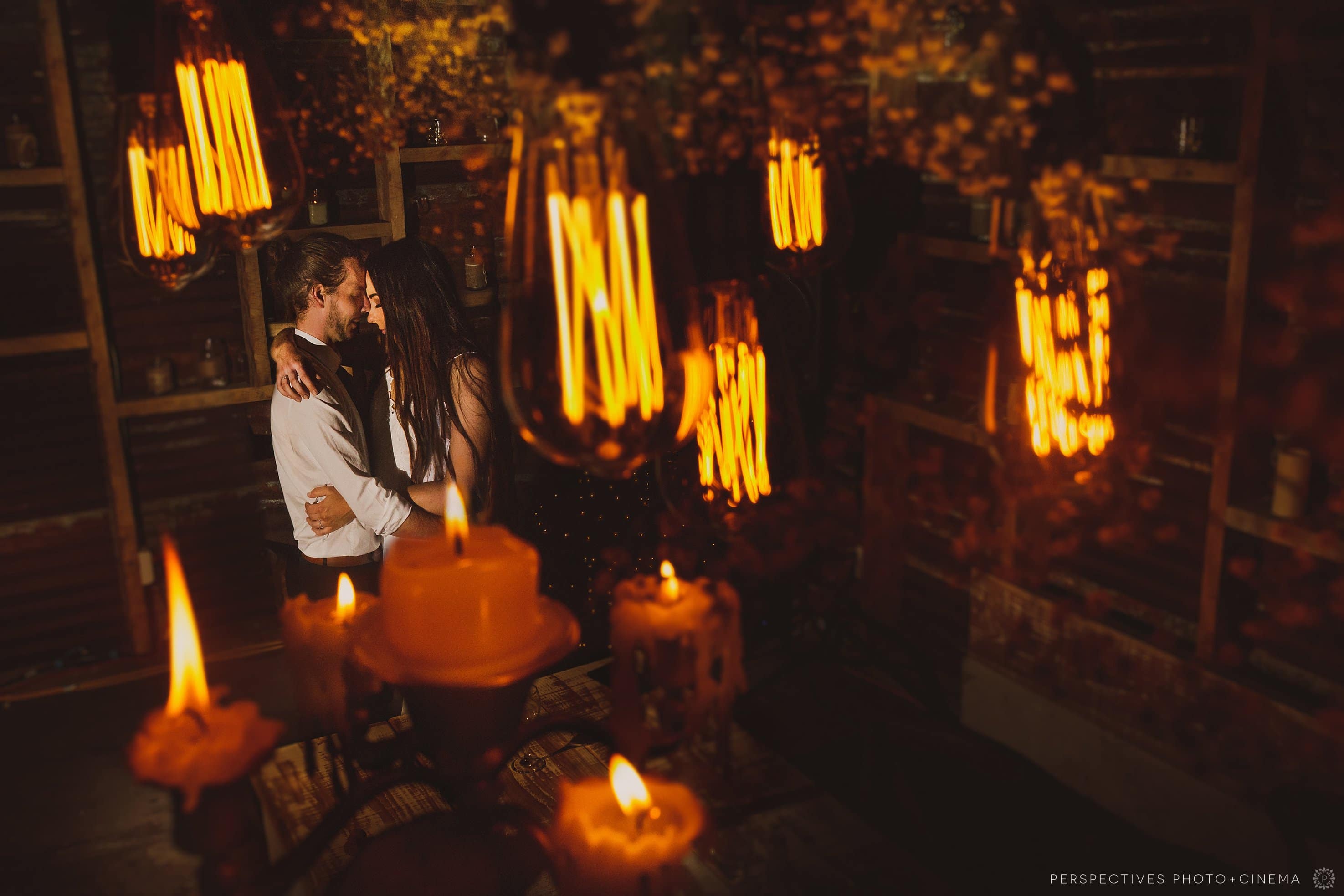At the very end of the night, we noticed that the amazing barn they’d spent so much effort creating was empty of people (who we all down at the tipi, dancing up a storm) – and instead, just filled with fairy lights. What better than to wrap things up with a couple of romantic shots inside the barn.
